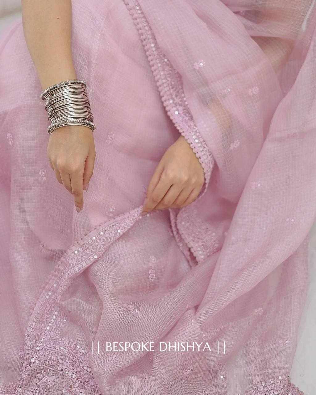 NC 5445 Heavy Kota Chex Sequance and thread Embroidery WorK Saree has been successfully added to your cart .