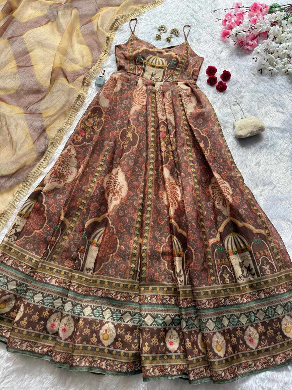 Anarkali Gown – Digital printed Jimmy Organza silk suit with a huge, graceful flair for a stunning flow